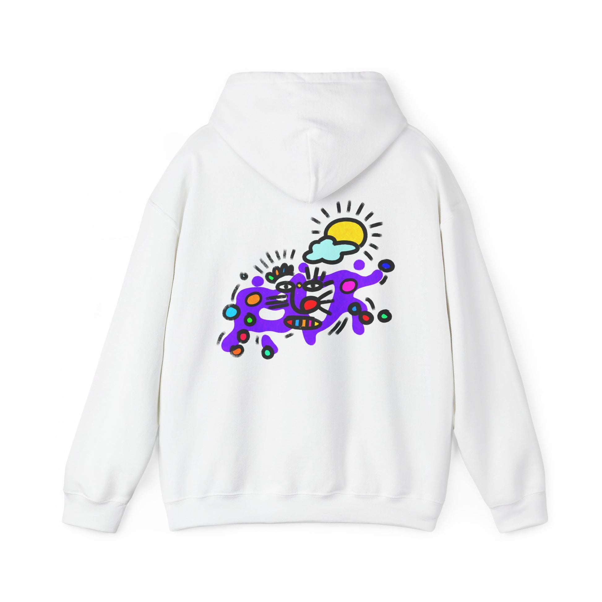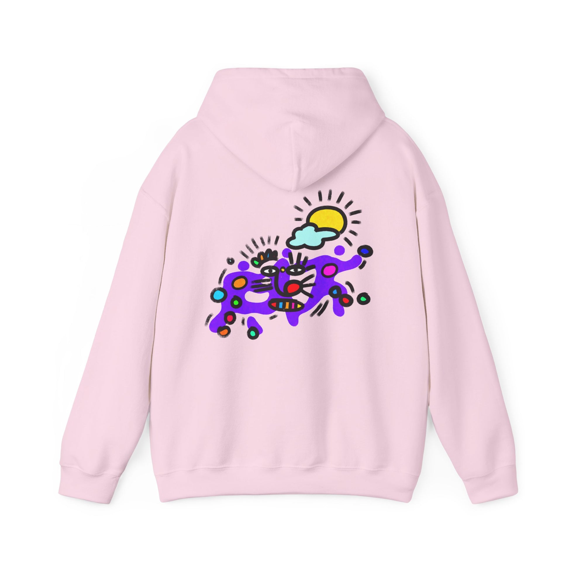 Simple, soft, and a little playful — this hoodie wraps you in warmth while showing off a cheerful pop-art design on the back. The roomy kangaroo pocket and double-lined hood feel familiar and comforting on cool mornings. The artwork’s bright colors and doodle-like lines bring an upbeat, creative energy that works well with casual weekend plans, art walks, or quiet studio sessions. Wear it layered over a tee or a flannel; the relaxed cut and resilient cotton-poly blend keep it looking lived-in without losing shape. It’s made with attention to responsible sourcing and low-impact dyes, so the cozy, colorful vibe comes with a clearer conscience.