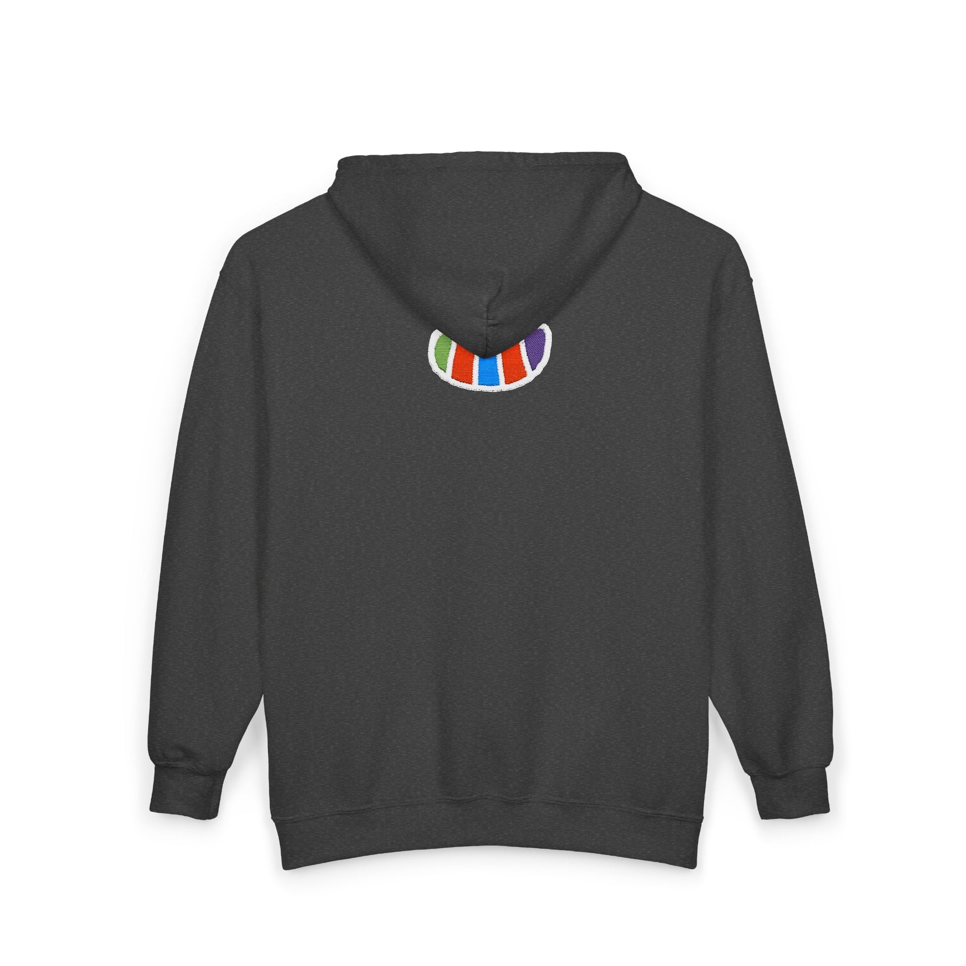 A midweight zip-up hoodie with a clean, wearable silhouette and a small, playful embroidered design on the back collar. The classic cotton-poly blend feels familiar and holds up to repeated wear. The roomy front pockets and adjustable hood make it a go-to layer for cool mornings, late-night walks, or studio sessions. The subtle, colorful embroidered motif at the upper back adds personality without shouting—an easy way to show a bit of character while staying comfortable and composed.
