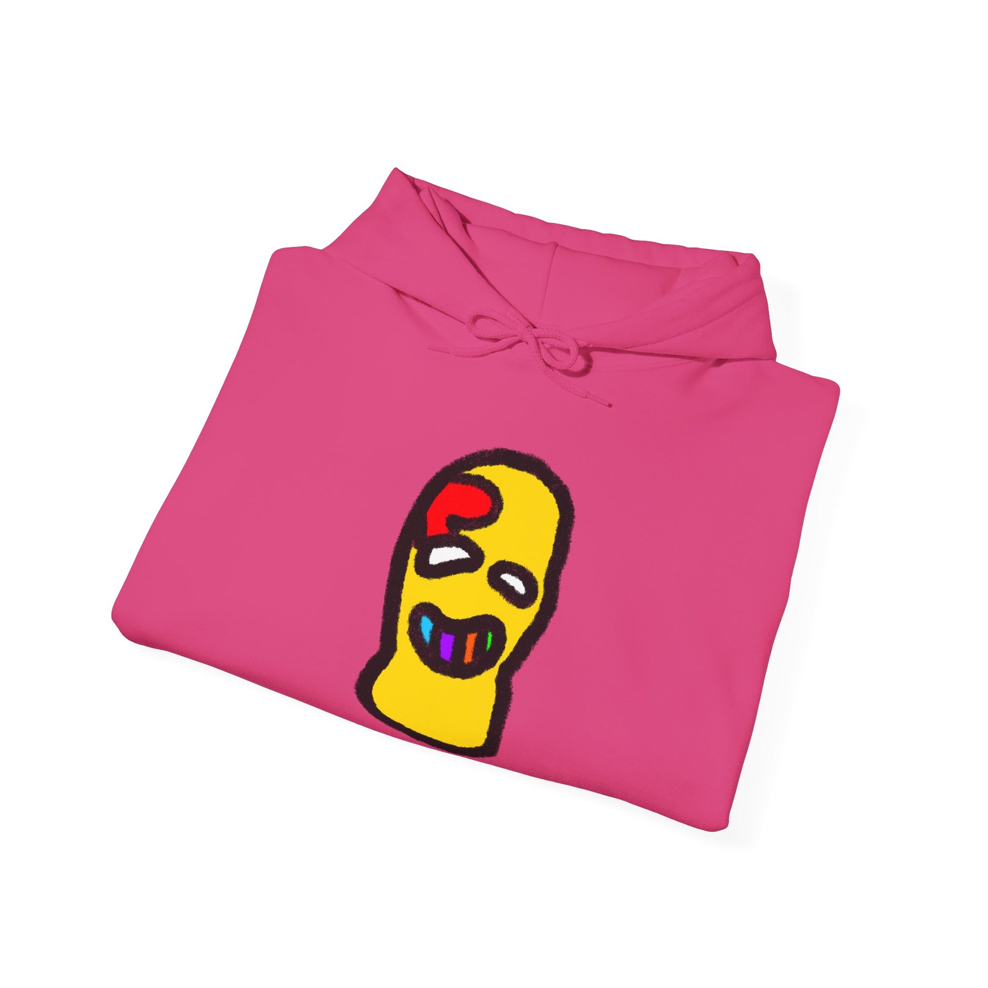 This cozy hooded sweatshirt combines streetwise attitude with playful, hand-drawn charm. Soft, mid-weight fleece cradles the body while a bright, doodle-style face sits centered on the chest — a quirky focal point that reads like wearable art. The roomy kangaroo pocket and double-layer hood add everyday function, and the tear-away label keeps comfort scratch-free. Wear it layered over a tee for chilly walks, to studio sessions, or whenever you want a bold but relaxed statement piece that feels lived-in and loved.